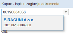 Po upisu OIB-a kliknite na strelicu prema dolje i u padajućem izborniku će biti ponuđen kupac kojem pripada upisan OIB: