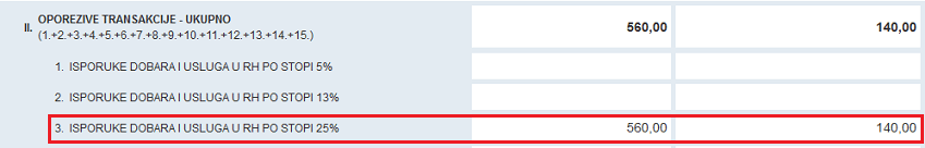 Račun nije iskazan u K-IRA. U obrascu PDV iskazan je u polju II.3: