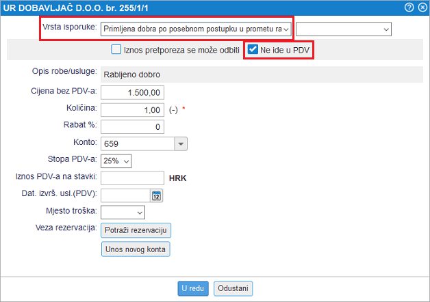 6. Omogućuje evidentiranje ulaznih računa za rabljena dobra