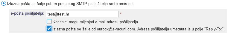 Postavka je zadana za sve korisnike. Poteškoće se eventualno mogu pojaviti samo pri zaprimanju odgovora na poslane e-mail adrese, ako e-mail klijent na strani primatelja ignorira polje “Reply-To”.